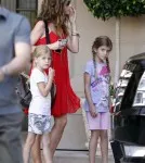 Denise Richards attends an event with her daughters Sam and Lola in Beverly Hills, CA on July 23, 2011 where her dad, proud grandpa Irv Richards took up the rear with new baby Eloise Richards.
