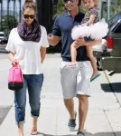 Jessica Alba and husband Cash Warren took their eldest daughter Honor Warren out to brunch at Le Pain Quotidien in Los Angeles on Saturday. Warren carried Honor from the restaurant and then let her down to play as they walked. Little Honor looked sweet in a tutu and mismatched sandals!