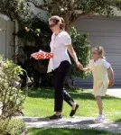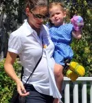 Jennifer Garner took her two daughters Violet and Seraphina to a birthday party on Wednesday. Before going to the party, They were seen picking up a present at Brentwood Market in California. Garner wore a white top and black pants that curved around her budding baby bump. Garner and Affleck have yet to reveal when their third child is due.