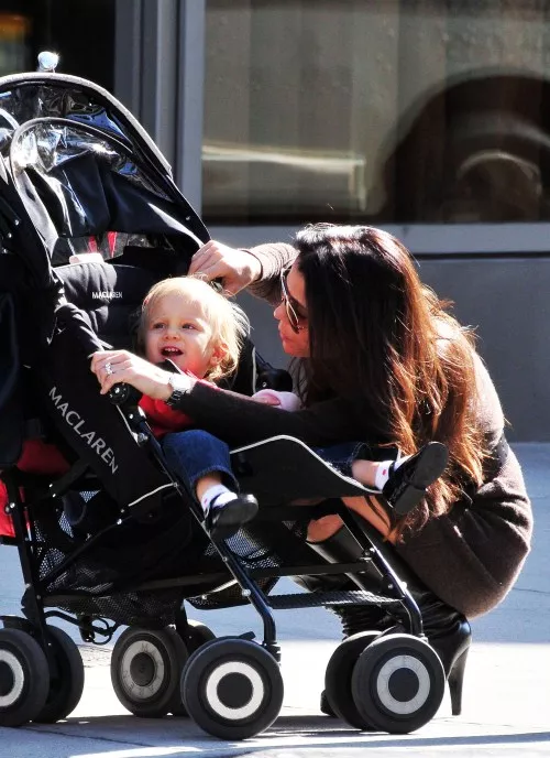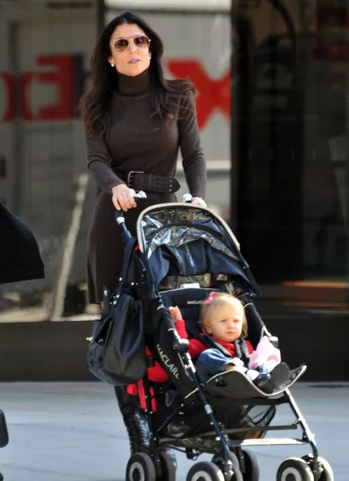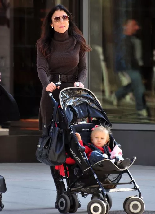 Bethenny Frankel and her one-year-old daughter Bryn were seen taking a stroll In New York City on Tuesday. Frankel was dressed in a brown sweater dress with boots while pushing Bryn in a Maclaren stroller. At one point, Frankel stopped to check on Bryn.