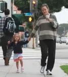 Jennifer Garner and her two-year-old daughter Seraphina were seen in Santa Monica, Ca on Thursday. Garner picked up a cup of tea while the duo strolled down a street. Seraphina jumped and skipped while holding Garner’s hand. Garner who is pregnant looked comfortable in a cashmere sweater and stretch pants. Her eldest daughter was absent from the outing.