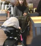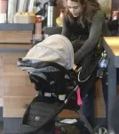 The two were seen at at a Starbucks coffee house in the West Village. Alba wore a scarf and sweater as she pushed her baby daughter Haven in one of her MULTIPLE Britax strollers.