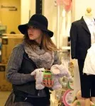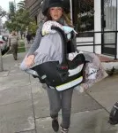 Jessica Alba took her 4-month-old daughter Haven Garner shopping in Beverly Hills, Ca on Monday. Alba carried Haven in a Britax Car Seat while making her way to Bel Bambini to pick up some toys and clothes for Haven. Alba wore a gray sweater under a black vest paired with a black and skinny jeans.