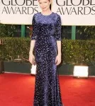 Kate Winslet always succeeds in pulling of a classic Hollywood look and last night was no exception. She showed off her curves in a black-and-white Jenny Packham gown made of battered silk and flashing a keyhole neckline. She also wore a pair of golden tasseled earrings and gold bracelet which matched the belt of her gown. Winslet’s fashion success was matched with a best performance by an actress in a Miniseries win for her role in Mildred Pierce.