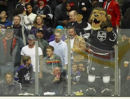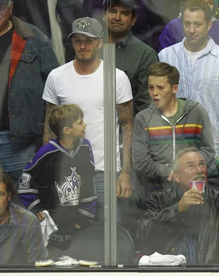 It was a sports weekend for the Beckhams! David Beckham and wife Victoria Beckham take their sons Brooklyn, Romeo and Cruz to the Los Angeles Kings vs. Vancouver Canucks NHL playoff game at the Staples Center in Los Angeles, California on April 15, 2012.