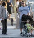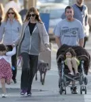 Actor and comedian, Adam Sandler, pulled stroller duty Wednesday as he and wife, Jacqueline, enjoyed a walk in Brentwood with their two little girls, Sunny and Sadie. Those little ones look like twins, don’t they? For the outing, they opted for a more cute, spring dress approach while their parents decided on casual sweats. That’s the way it should be!