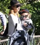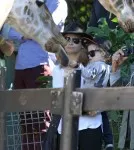 Nicole Richie and husband Joel Madden took their two children Harlow and Sparrow Madden to the zoo in Sydney, Australia today. The family appeared to be having a good time as they viewed the different animal exhibits. Richie and Sparrow even fed a giraffe with a very a long tongue.