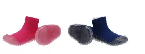 For a long time I had seen these goofy looking shoe/sock things and thought to myself “$12.99 for a stupid pair of socks? Geezh! heck no!”. Well, let me tell you what a great purchase these were. I happened to find mine on a last minute trip to Walgreens right before we left for a labor day weekend road trip, they were half off! I bought a pair for my daughter in the pink and a pair for my son in navy. I figured for the $5 they cost me, if they went in the trash the minute the trip was over no harm done! I had figured these would be good for our kiddos as they are much more comfortable than a shoe but have the rubbery bottom so they can wear them in and out of gas stations.