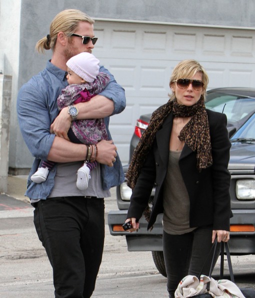 50980125 ‘The Avengers’ actor Chris Hemsworth and wife Elsa Pataky take their daughter India to meet up with his brother Liam for lunch at the Kreation Kafe in Santa Monica, California on December 30, 2012. FameFlynet, Inc – Beverly Hills, CA, USA – +1 (818) 307-4813
