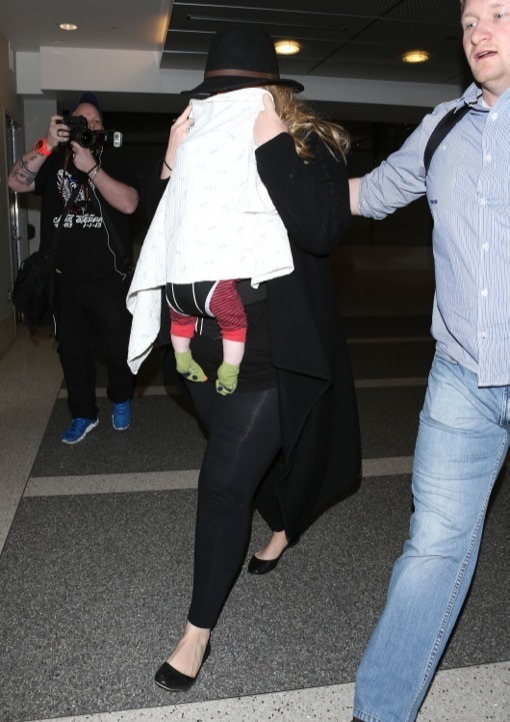 51028375 Superstar singer Adele, her boyfriend Simon Konecki and their son Angelo departing on a flight at LAX airport in Los Angeles, California on March 2, 2013. Adele kept her and her son’s face covered as she made her way through the airport. FameFlynet, Inc – Beverly Hills, CA, USA – +1 (818) 307-4813