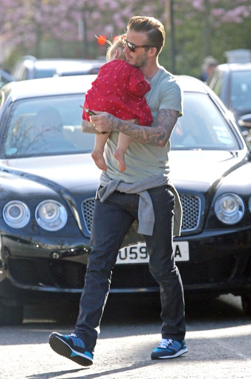51082142 Soccer star David Beckham and his daughter Harper step out together in London, England on April 29, 2013. Designer Stella McCartney walked past as David carried Harper to the car. FameFlynet, Inc – Beverly Hills, CA, USA – +1 (818) 307-4813 RESTRICTIONS APPLY: USA ONLY