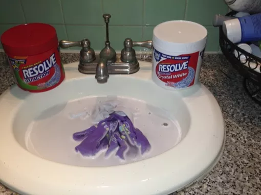 I recently used the Resolve Oxi-Action In-Wash Stain Removal Powder to pretreat my daughter’s food stain. It was great addition to my tip of applying warm water immediately to a stain. I took a little bit of the powder and mixed it with warm water to create a paste and then applied it to the stain. Plus, Resolve has developed a clever scoop with nobbles on the bottom so you can work it right into the stain. Obviously, much better than using my fingers!
