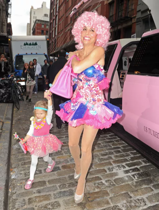 The reality star was dressed in a curly pink wig, a bright pink tutu outfit and sparkly heels while heading to a pink limo. Her daughter also wore a pink costume.