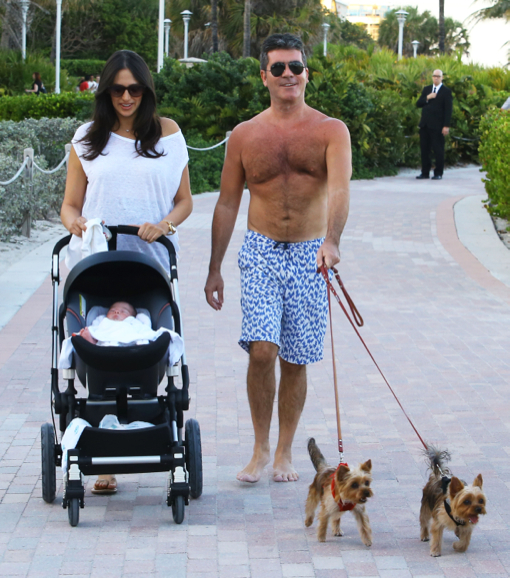 51347113 Couple Simon Cowell & Lauren Silverman enjoy a relaxing stroll with their baby boy Eric and dogs in Miami, Florida on March 4, 2014. FameFlynet, Inc – Beverly Hills, CA, USA – +1 (818) 307-4813