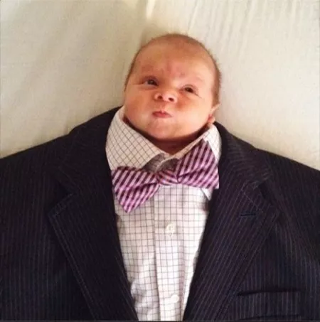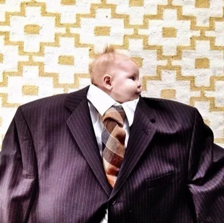Lay out a buttoned up suit and tie on the floor, insert baby, snap a picture and include #babysuiting to join the stream of mini-CEOs invading virtual boardrooms across the world.