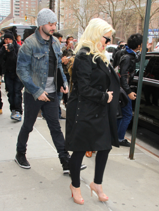 51387407 Singer Christina Aguilera signs autographs for fans with her fiance Matthew Rutler as they check out of their hotel in New York City, New York on April 18, 2014. FameFlynet, Inc – Beverly Hills, CA, USA – +1 (818) 307-4813