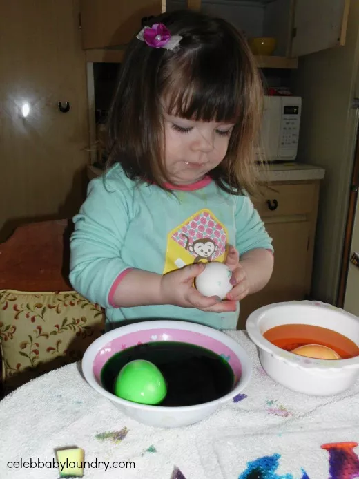 Now that I’m mom, I’m creating my own Easter traditions with my 2½-year-old daughter, Ava. I love Easter festivities because even the smallest member of the family can join in on the fun! Last year, was her first time decorating eggs and having a Easter Egg hunt! Lets just say having a toddler dying eggs can be MESSY!