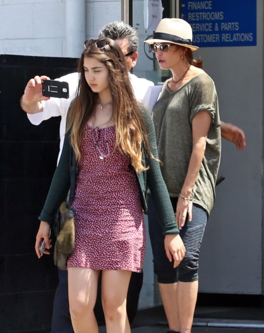 51433716 ‘I Brake For Gringos’ actress Teri Hatcher takes her teenage daughter Emerson to Sunrise Ford in North Hollywood, California to buy her a new car on May 29, 2014. Afterward the deal was done, Teri stopped to pose for a photo with the salesman. FameFlynet, Inc – Beverly Hills, CA, USA – +1 (818) 307-4813