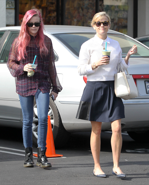 Reese Witherspoon Stops For Drinks With Her Pink-Haired Daughter