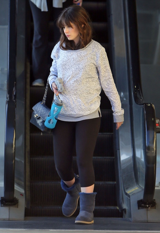 Exclusive… Pregnant Zooey Deschanel Leaving A Pilates Class