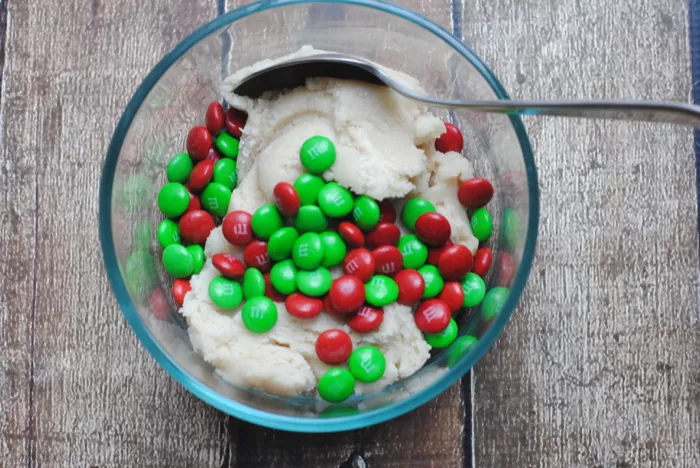 3. Stir in the red & green holiday M&M’s.