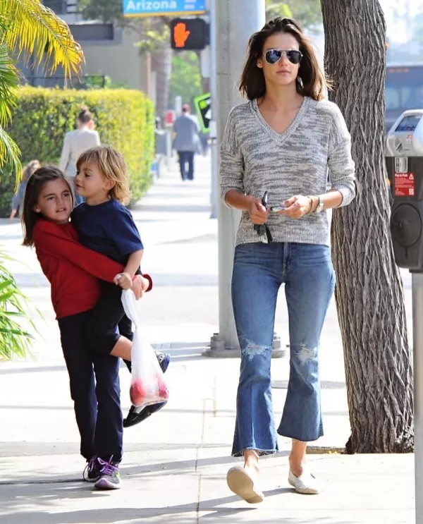The supermodel was dressed in knitted a sweater and wide-legged ankle jeans. Anja was also dressed in a sweater and jeans while she tried to carry her younger brother.