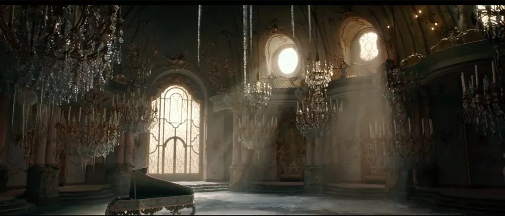 In the teaser, the audience is greeted with a beautiful instrumental piece as the Beast’s castle is revealed on a snowy night. We enter a grand ballroom with a deserted piano among magnificent looking chandeliers and intrinsicly designed walls with gold detailing. Cobwebs adorn the walkways and candles shine brightly, yet barely light the surroundings. The camera then pans into a painting, which features a royal family with a young boy in the centre. Suddenly, claws tear through his painted face. All goes dark and then the door opens, where we get the first glimpse of Emma Watson, who plays Belle. Lumiere (Ewan McGregor), the candelabra notices her and asks if she is the one (who will break the curse), to which we then hear Belle asking,”Hello?”. The iconic rose is then shown, before we see the face of Belle looking at it while raising her hand.
