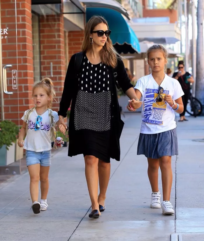 Jessica Alba was spotted out with her daughters Honor and Haven in Beverly Hills, CA on Tuesday (Aug. 16).