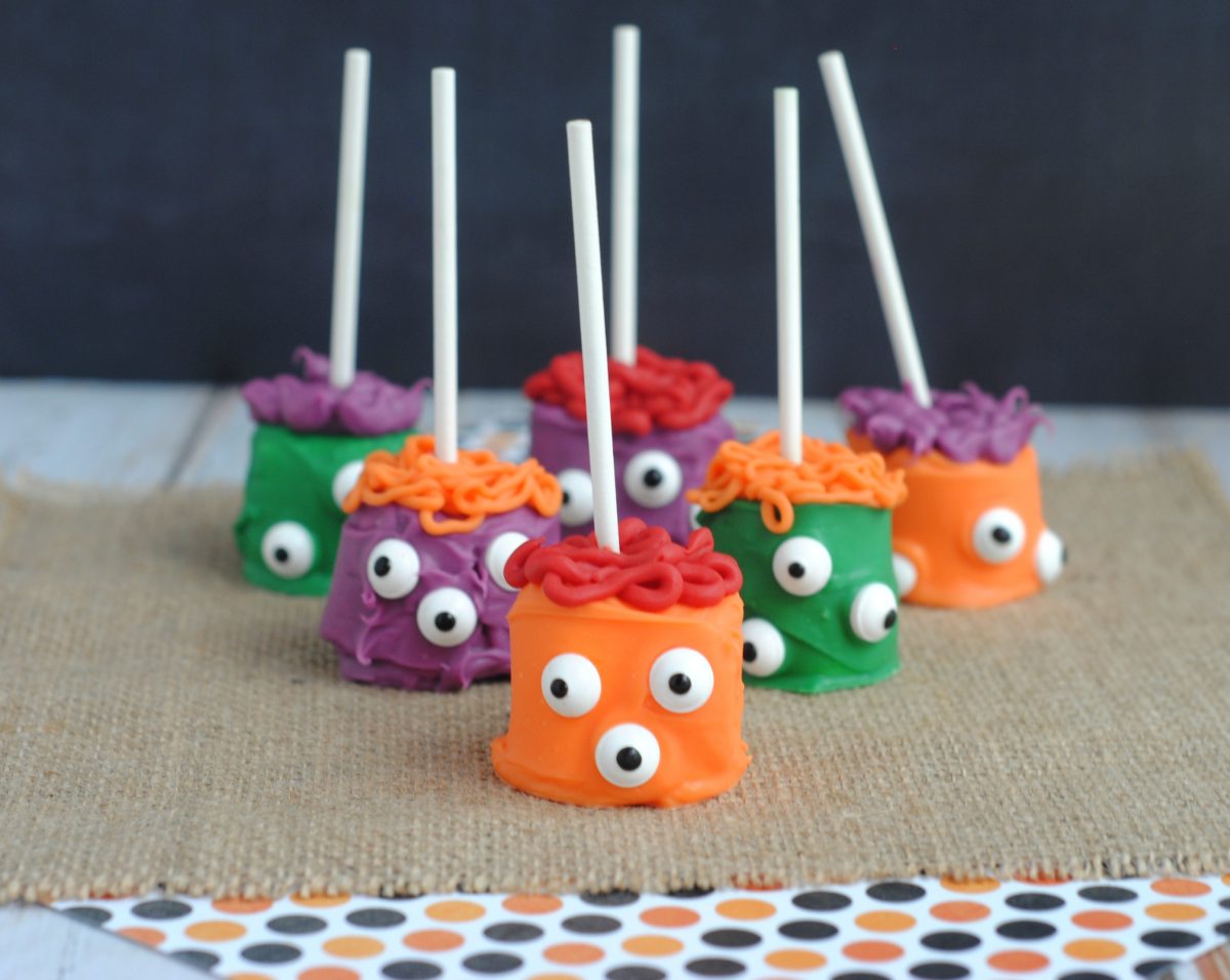 I have always loved celebrating Halloween and I tend to go all out! From baking, decorating costumes and more I love everything Halloween. I also try to get my three daughter’s involved in the lead up to the festivities. That’s why I love these easy-to-make Halloween Marshmallow Monster pops. Not only are the pops super cute for Halloween, but children love making and eating them!