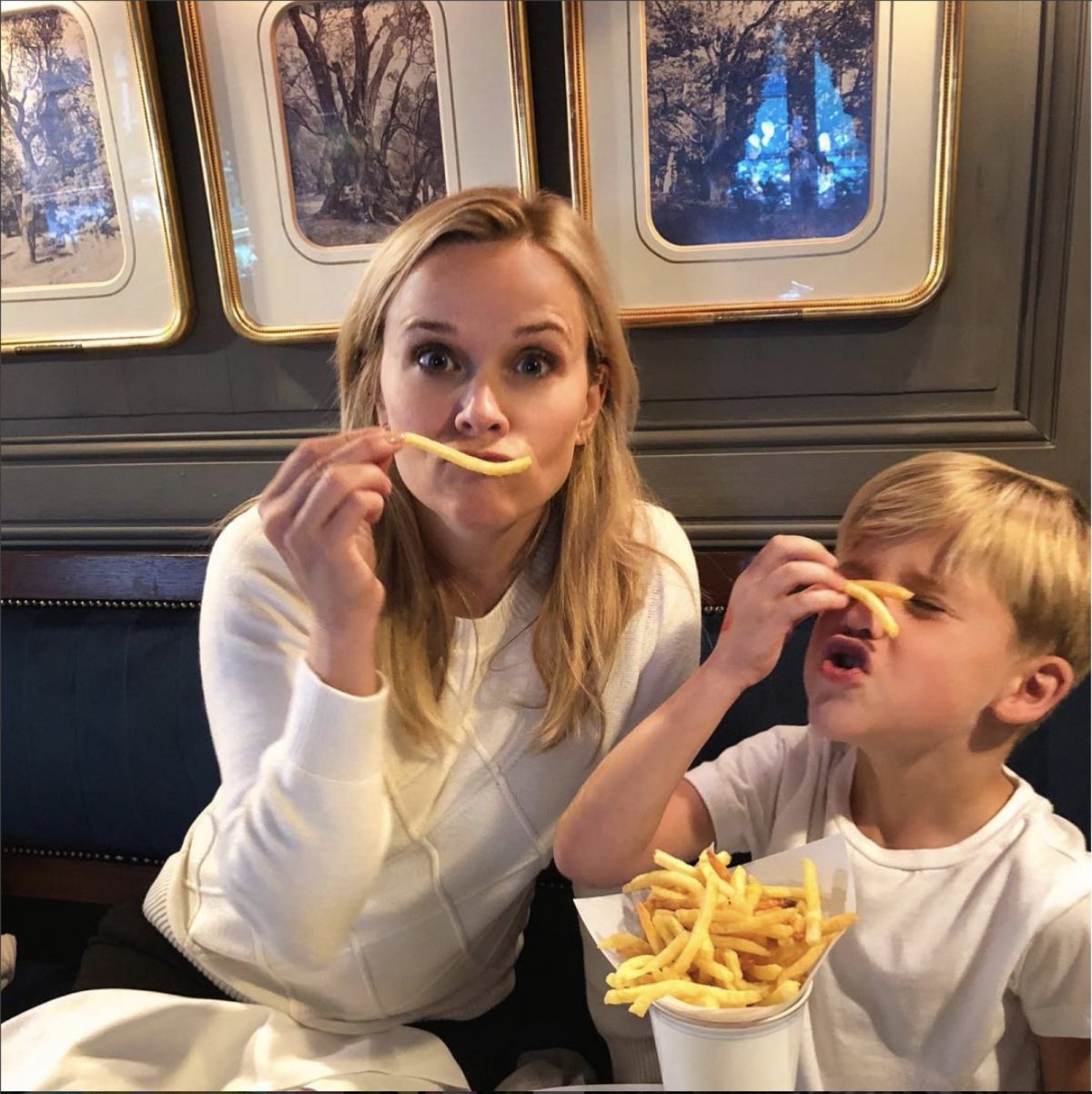 The Legally Blonde actress took to Instagram to share a funny snap of her and her youngest son Tennessee while dining at a French bistro.