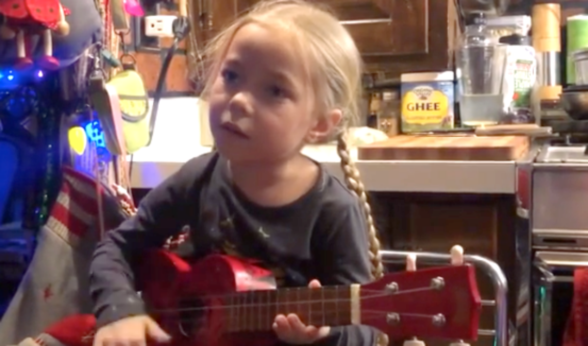 She (or a parent) posted about the video: “This is my first original song “walking in the dark” that I just made up on the spot to sing to my GH mom @rbjobud … What do you think? I’m gonna get my friend @douglasladnier to help me polish it off a bit and teach me some ukulele chords and it will be … The Best! ; )If you want to watch the whole video and hear the whole song… follow me on facebook! @jophiellelove #paradigmyouth #youngsingersongwriter #youngsongwriter #youngsinger #walkinginthedark #jolove #jophiellelove #singing #ukulele #originalmusic.”