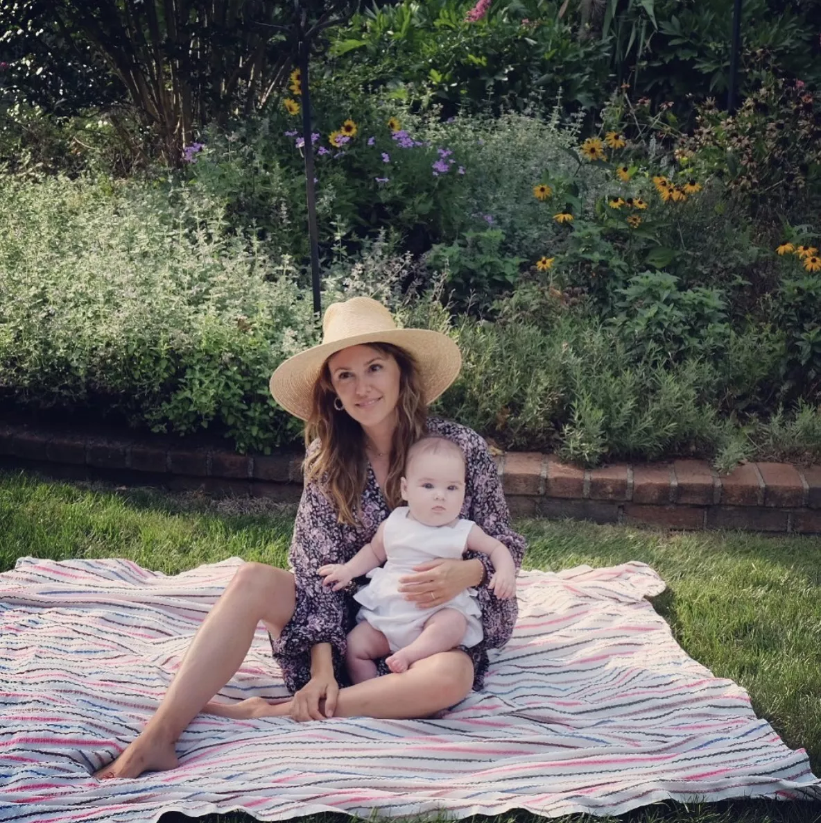 Sharing the most adorable photo of her and her daughter Josephine on a picnic blanket in their backyard, Elizabeth captioned it with,