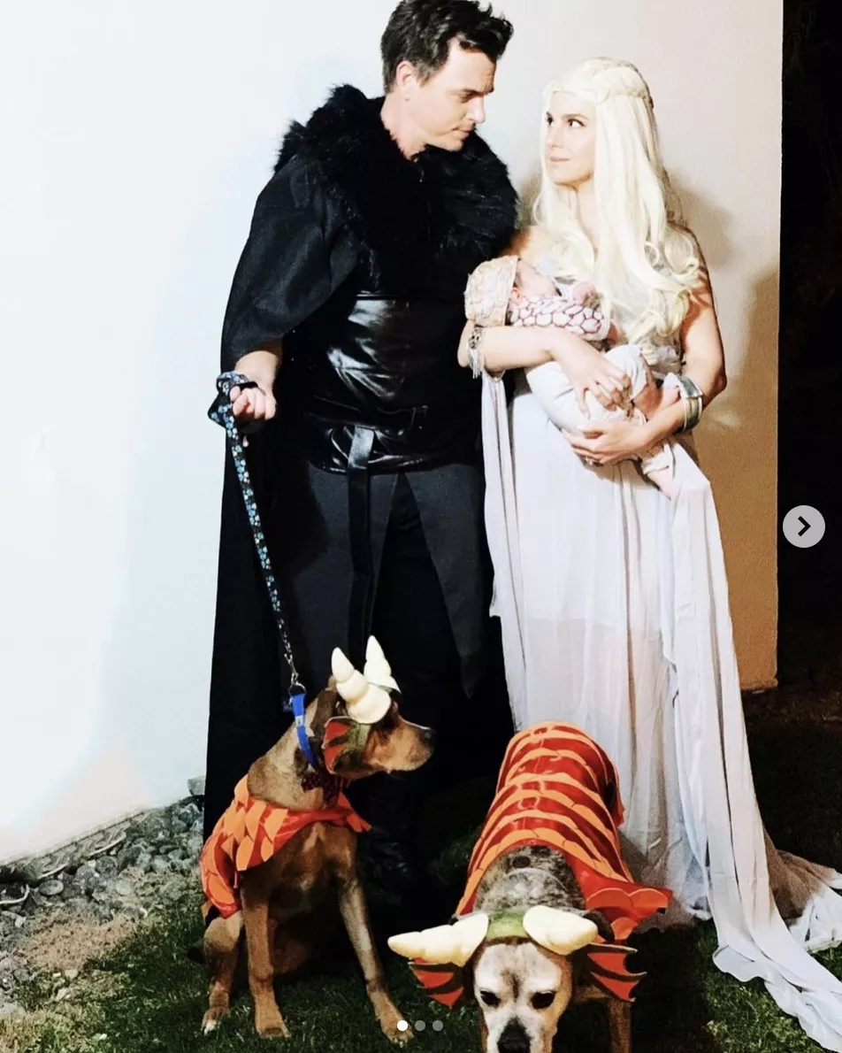 Sharing an adorable photo of her along with her husband, The Bold and the Beautiful star Darin Brooks (Wyatt Spencer), and their daughter Josephine, she captioned the fun pic with, “Ok so last year we were Game Of Thrones (Everleigh was our little dragon egg) and Evie and I were also Sandy and Rizzo from Grease. What should we be this year?? Even tho we aren’t going anywhere, we still have so much fun dressing up! Family costume ideas below please!”