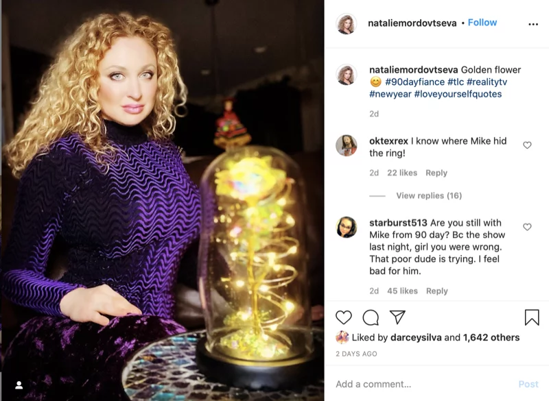 She did reply to one fan who commented about the engagement ring, claiming to know where Mike hid it, and Natalie responded by asking where the ring was, followed by a grinning emoji. When she posted one particular Instagram update after a huge disagreement with Mike that had aired on the show, the angry comments that came in were somewhat expected. Fans were joking about having IQs higher than Natalie, and some felt that her horrible attitude took away from her beauty.