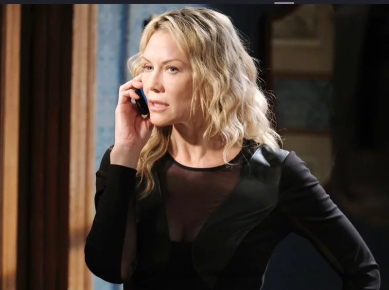 Sami Brady (Alison Sweeney) thinks she can put what happened with Lucas Horton (Bryan R. Dattilo) behind her and finally be with EJ DiMera (Daniel Feuerriegel) again when they finally make love, something that we learn hasn’t been a part of their lives for a while. Then, all hell breaks loose and an on-the-run Kristen DiMera (Stacy Haiduk) calls her brother. Sami knocks the phone right out of EJ’s hand as soon as she realizes he is talking to Kristen and nope, that doesn’t look suspicious at all, right Sami?
