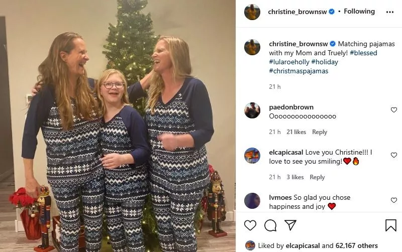 Sister Wives fans watch the beginning of the split between Christine Brown and Kody on Season 16 of the show. Spoilers already came out that she left Flagstaff. These days, she lives in Utah. There, she spends time with her daughters Truely, Mykeltyi, Aspyn, and her mom. Thanksgiving as a single woman came along for her for the first time in 27 years this year and she looked absolutely radiant, fans thought. She and Truely got together with her mom and they all twinned like peas in a pod.
