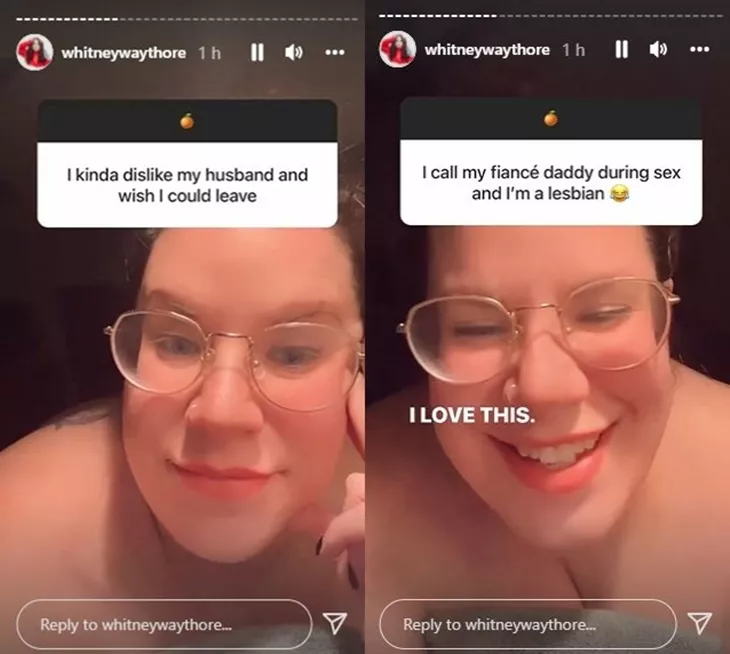 Whitney Way Thore reacted to a lot of outrageous confessions by fans. Some of the more serious ones included this confession: “I kind dislike my husband and wish I could leave.” Well, not beating about the bush, Whitney told the fan to just “leave.” However, funnier-sounding confessions also arrived. Another TLC fan really got her laughing when she wrote, “I call my fiance “daddy” during sex and I’m a lesbian.”