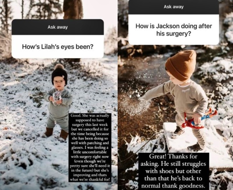 Tori Roloff took to her Instagram Stories this week and held a Q&A. In the questions, fans asked about Jackson and Lilah. One TLC fan asked the LPBW star, “How is Jackson doing after surgery?” Well, he’s getting along just fine right now, although his mom mentioned that he struggles a bit “with shoes.” The poor little kid previously used a walker just ahead of Christmas, so that’s good news for fans of the family.