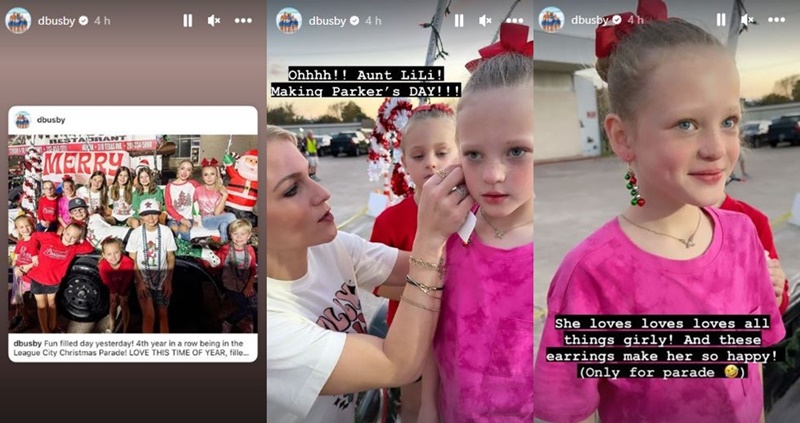Danielle Busby took to her Instagram Stories and shared some photos from the parade, Two of them showed Parker Kate being given some earrings by her Aunt Lili. In the caption, Danielle said, “She loves, loves all things girly.” Then she added, “these earrings make her so happy.” Next, she noted that they were restricted to Parker wearing them at the parade.