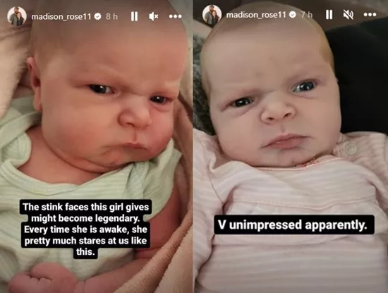The Sister Wives star said that “every time she is awake, [Josephine] pretty much stares at us like this.” A similar photo revealed her daughter looking equally disapproving. Maddie wrote, “V unimpressed apparently.” No doubt Maddie got a lot of DMs about her scowing baby. Hopefully, the kiddo cheers up as bit she grows older.