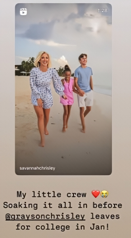 This week, a post from Instagram Stories revealed that Grayson Chrisley is going to college in January as he had hoped. In the post, he and Chloe walked alongside their big sister on the beach. Savannah said to her Chrisley Knows Best fans, “My little crew soaking it all in before @graysonchrisley leaves for college in Jan!”