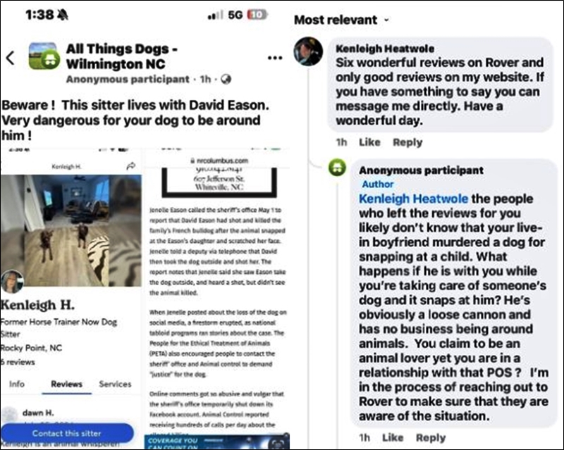 Recently, a post arrived on Reddit that showed someone had posted a negative rating regarding Kenleigh’s dog-sitting income. Under her profile, someone had written, “Beware! This sitter lives with David Eason. Very dangerous for your dog to be around him.”