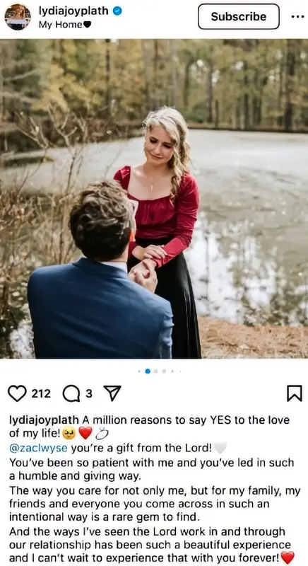 Lydia Plath’s hard launch came in November, and at the time, her followers thought she had already married. However, the caption soon put them right. Nevertheless, many people predicted that very soon, she would get engaged and marry Zac.