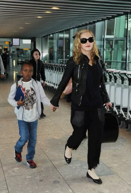 Madonna was seen entering Heathrow Airport with her children. She was seen with Lourdes, Rocco, David Banda and daughter Mercy…