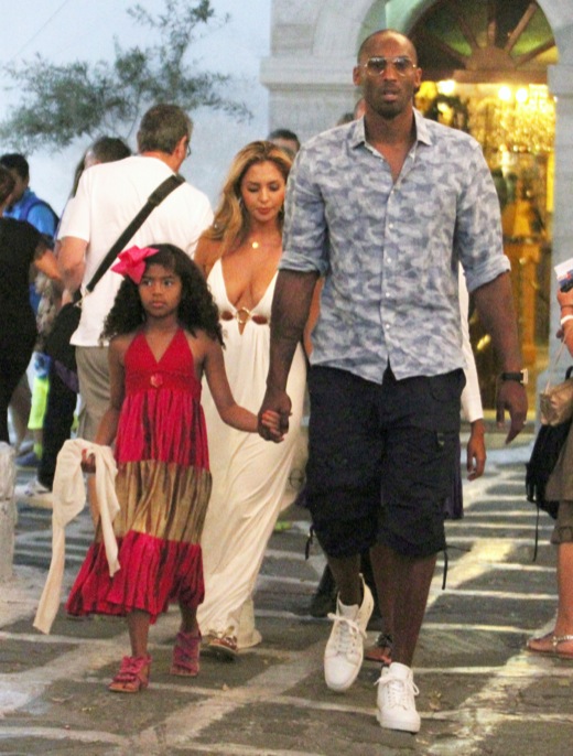 51461929 NBA star Kobe Bryant enjoys a vacation with his wife Vanessa and their daughters Natalia & Gianna in Mykonos, Greece on June 24, 2014. The family enjoyed a day of shopping and ate ice cream. Kobe rode jet skis and posed for pictures and signed autographs for fans! **NO GREECE** FameFlynet, Inc – Beverly Hills, CA, USA – +1 (818) 307-4813 RESTRICTIONS APPLY: SEE CAPTION FOR RESTRICTIONS